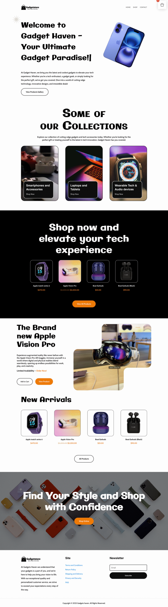 Gadgets Haven is an online store offering iPhones, laptops, and smartwatches. The client needed a polished, user-friendly e-commerce site to showcase products and streamline shopping.